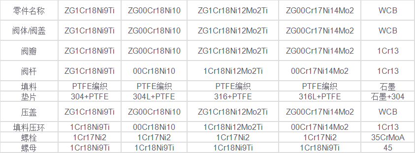 主要零件材質(zhì):