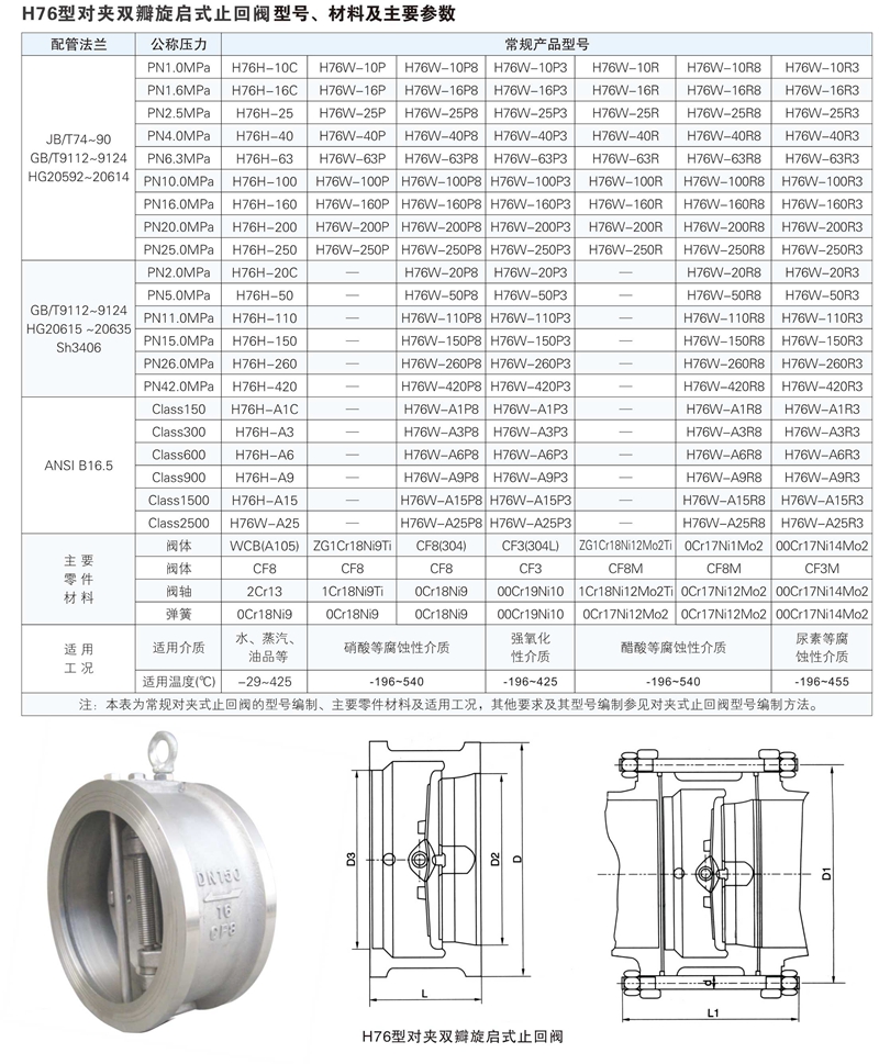 H76不銹鋼對(duì)夾止回閥